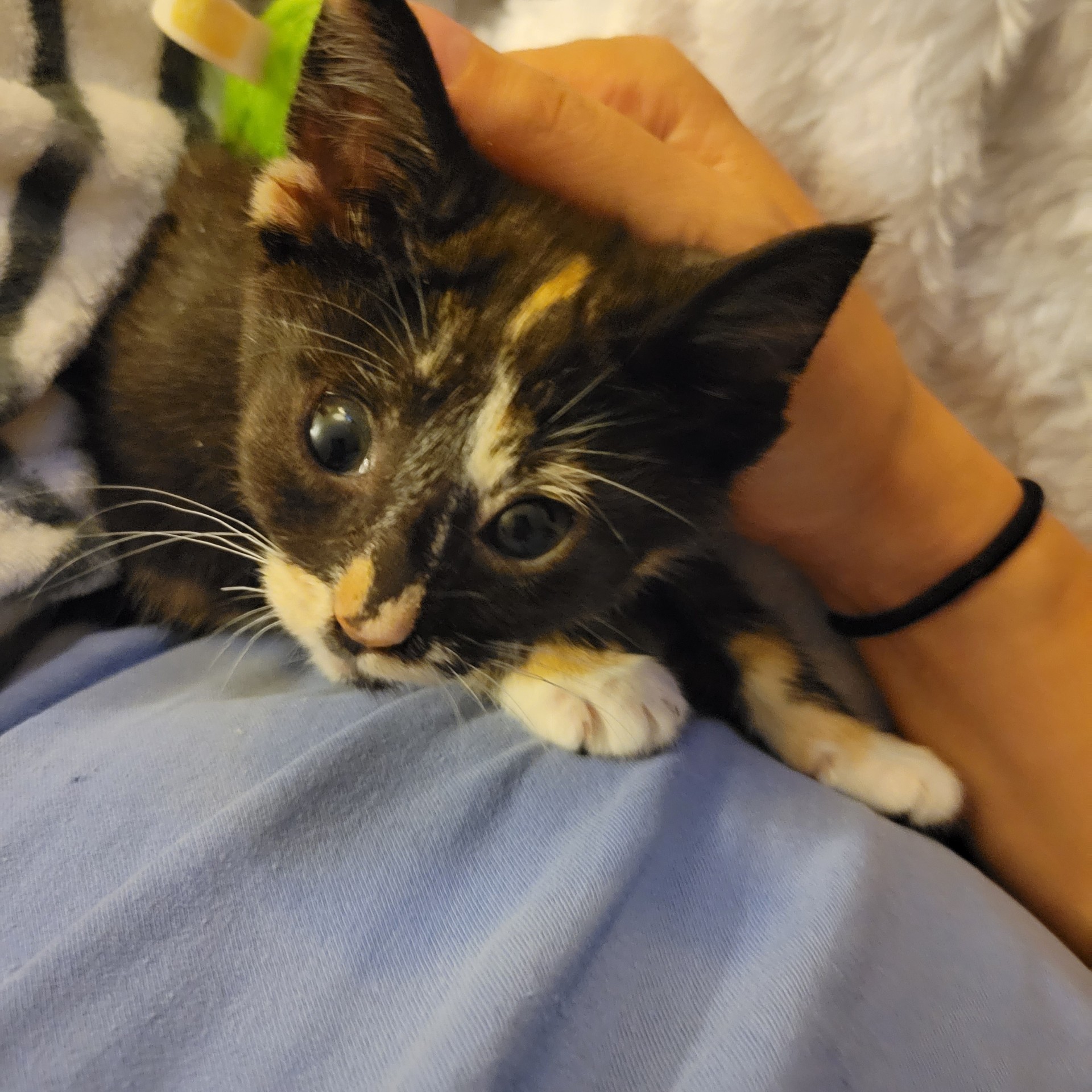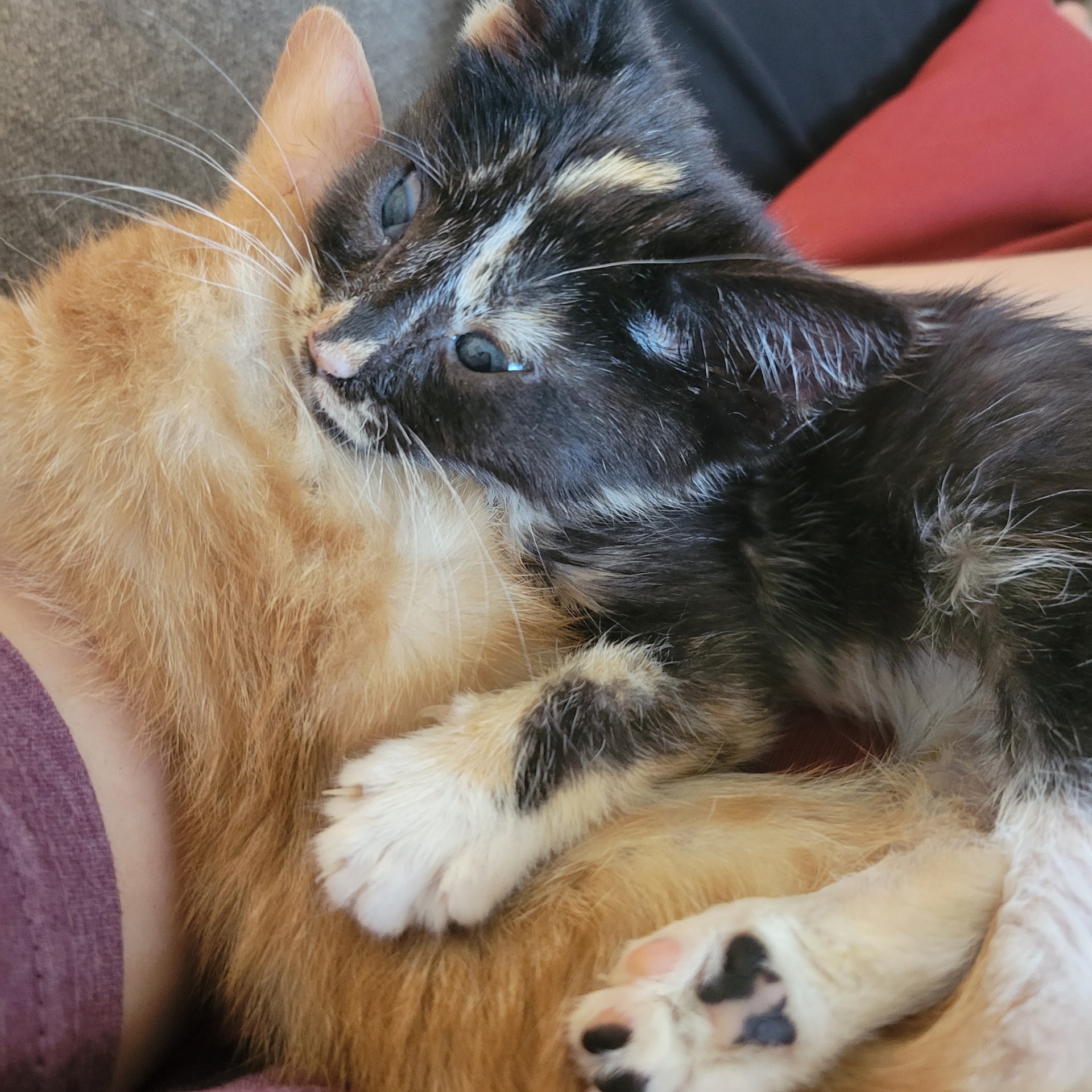 Abby has been making gains ever since, and loves to play, snuggle, and romp with her fellow foster siblings, who welcomed her into the fold without treating her any differently. She even celebrated hitting the two pound mark recently! Dr. Leslee is optimistic that Abby will be strong enough to have her blood drawn for diagnostics soon, which will help us learn more about her condition. This special kitten still has a long road ahead of her, but we’ll be with her every step of the way!