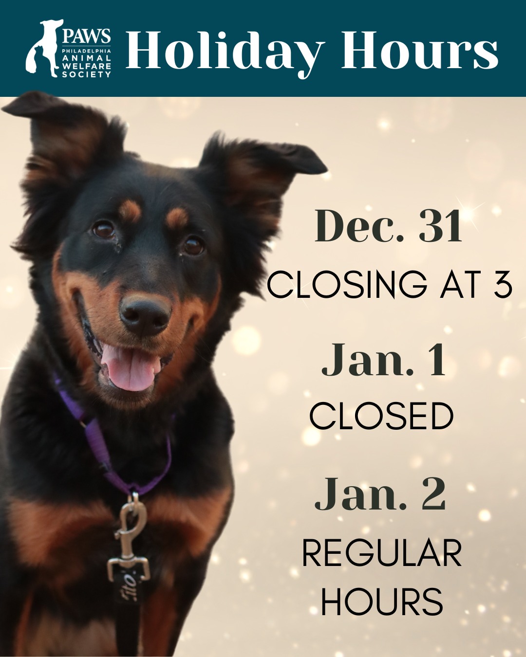 As we celebrate the New Year, please note adjusted hours at all PAWS locations: