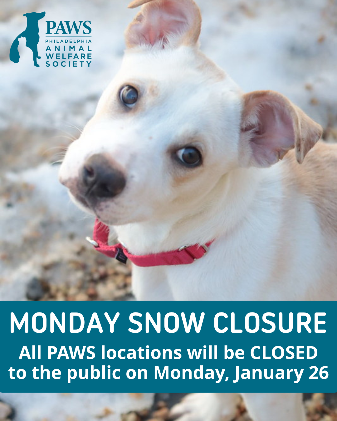PAWS Closed on Sunday, January 25 & Monday, January 26